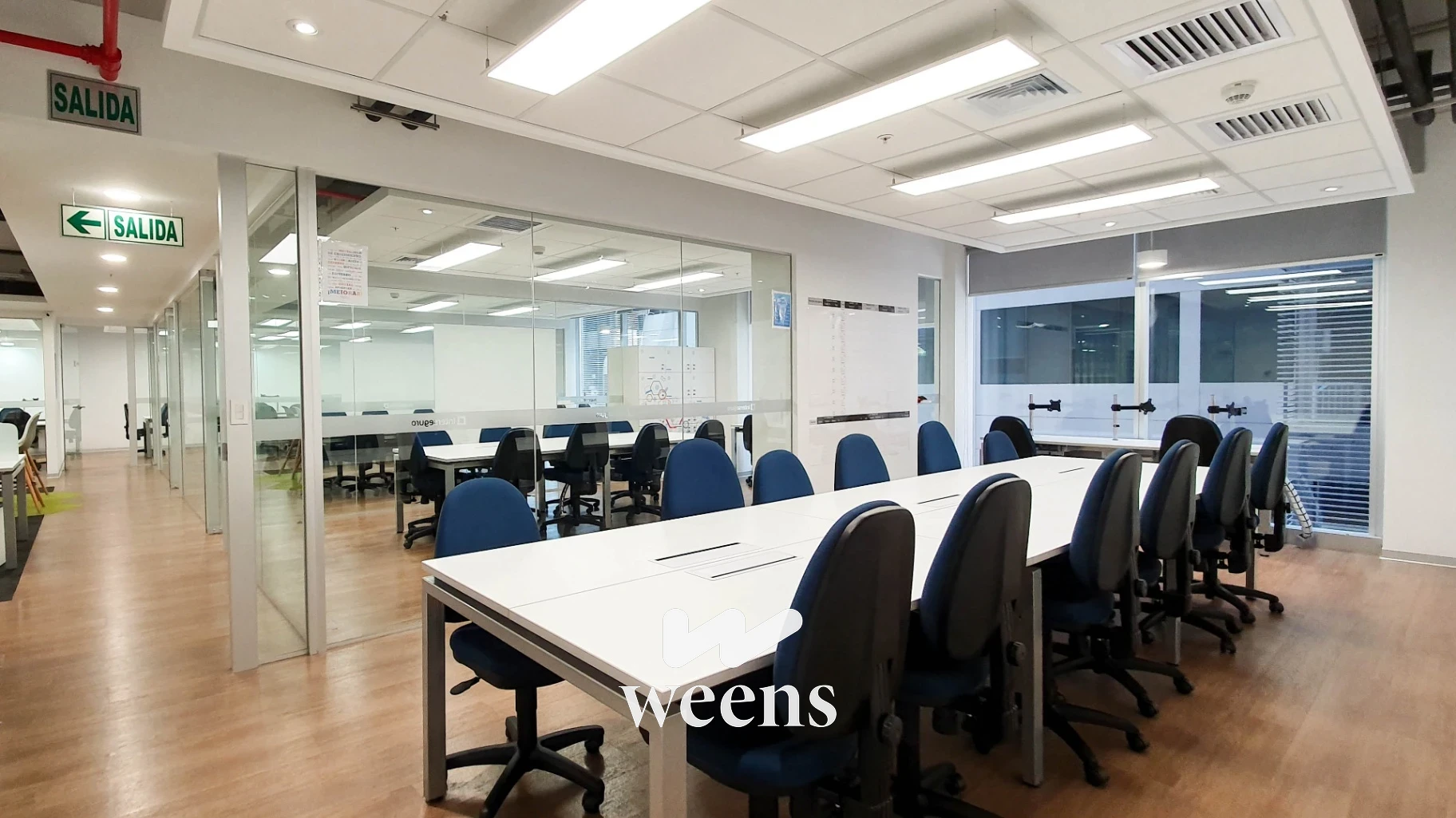 Oficina corporativa en moderno complejo empresarial, con excelente iluminación natural y vista privilegiada, diseñada bajo estándares de certificación LEED, lo que garantiza eficiencia energética y sostenibilidad.